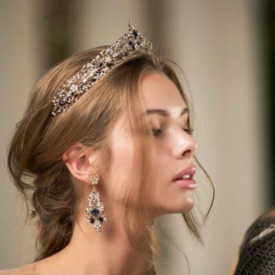 هماهنگی تاج با مدل مو و لباس: تاج را با شینیون، رنگ مو و سبک لباس ست کنید.