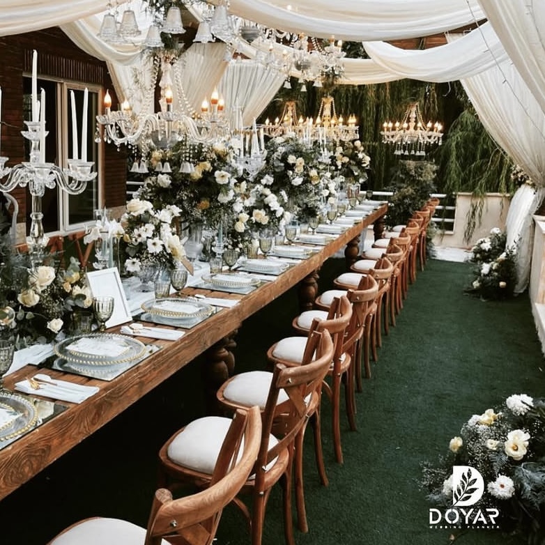 باغ تالار اختصاصی، چیدمان حرفه‌ای سفره عقد، دسته‌گل عروس، کترینگ مجلل با منوهای متنوع، نورپردازی و موسیقی زنده، تنها بخشی از خدماتی است که برای شما در نظر گرفته شده است. هر مراسم، یک داستان منحصربه‌فرد دارد و دویار این داستان را با هنر و خلاقیت، به زیباترین شکل روایت می‌کند. حتی اگر مراسمی کوچک و صمیمی را ترجیح می‌دهید یا یک جشن باشکوه را در نظر دارید، تیم دویار تمام جزئیات را با حساسیت اجرا می‌کند تا همه‌چیز همان‌طور که می‌خواهید باشد.